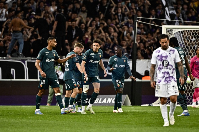 Joie but Neil El Aynaoui (rcl) - Match de Ligue 1 McDonalds, Toulouse contre Lens (1-1) à Toulouse le 10 mai 2025. Ligue 1 McDonalds match, Toulouse against Lens (1-1) in Toulouse on May 10, 2025.