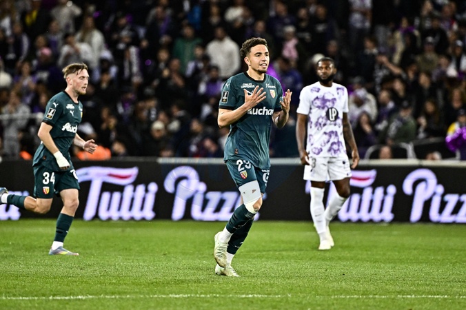 Joie but Neil El Aynaoui (rcl) - Match de Ligue 1 McDonalds, Toulouse contre Lens (1-1) à Toulouse le 10 mai 2025. Ligue 1 McDonalds match, Toulouse against Lens (1-1) in Toulouse on May 10, 2025.
