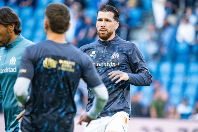 Pierre-Emile Hojbjerg (OM) - Match de Ligue 1 McDonalds, AC Le Havre contre l'Olympique de Marseille (1-3) au Havre le 10 mai 2025. Ligue 1 McDonalds match, AC Le Havre against Olympique de Marseille (1-3) in Le Havre on May 10, 2025.