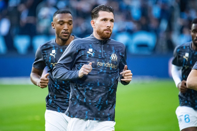 Pierre-Emile Hojbjerg (OM) - Match de Ligue 1 McDonalds, AC Le Havre contre l'Olympique de Marseille (1-3) au Havre le 10 mai 2025. Ligue 1 McDonalds match, AC Le Havre against Olympique de Marseille (1-3) in Le Havre on May 10, 2025.
