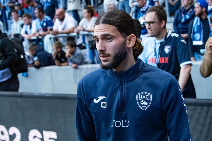 Ilyes Housni (AC Le Havre) - Match de Ligue 1 McDonalds, AC Le Havre contre l'Olympique de Marseille (1-3) au Havre le 10 mai 2025. Ligue 1 McDonalds match, AC Le Havre against Olympique de Marseille (1-3) in Le Havre on May 10, 2025.
