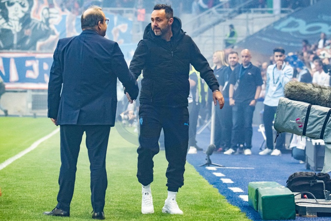 Roberto De Zerbi (OM) - Match de Ligue 1 McDonalds, AC Le Havre contre l'Olympique de Marseille (1-3) au Havre le 10 mai 2025. Ligue 1 McDonalds match, AC Le Havre against Olympique de Marseille (1-3) in Le Havre on May 10, 2025.