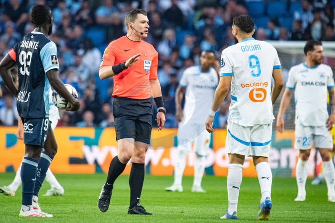 Willy Delajod (Arbitre Central) - Match de Ligue 1 McDonalds, AC Le Havre contre l'Olympique de Marseille (1-3) au Havre le 10 mai 2025. Ligue 1 McDonalds match, AC Le Havre against Olympique de Marseille (1-3) in Le Havre on May 10, 2025.