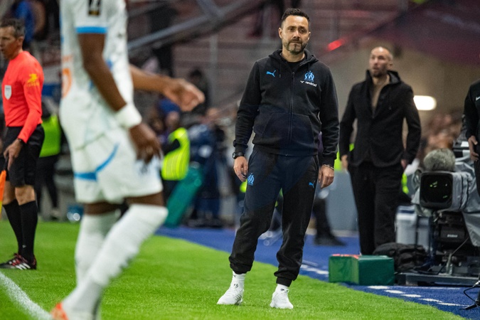 Roberto De Zerbi (OM) - Match de Ligue 1 McDonalds, AC Le Havre contre l'Olympique de Marseille (1-3) au Havre le 10 mai 2025. Ligue 1 McDonalds match, AC Le Havre against Olympique de Marseille (1-3) in Le Havre on May 10, 2025.