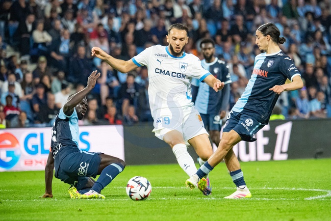 Amine Gouiri (OM) - Match de Ligue 1 McDonalds, AC Le Havre contre l'Olympique de Marseille (1-3) au Havre le 10 mai 2025. Ligue 1 McDonalds match, AC Le Havre against Olympique de Marseille (1-3) in Le Havre on May 10, 2025.