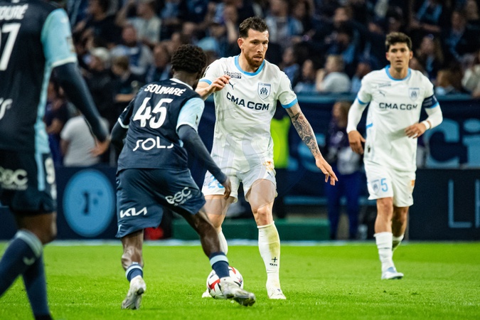 Pierre-Emile Hojbjerg (OM) - Match de Ligue 1 McDonalds, AC Le Havre contre l'Olympique de Marseille (1-3) au Havre le 10 mai 2025. Ligue 1 McDonalds match, AC Le Havre against Olympique de Marseille (1-3) in Le Havre on May 10, 2025.