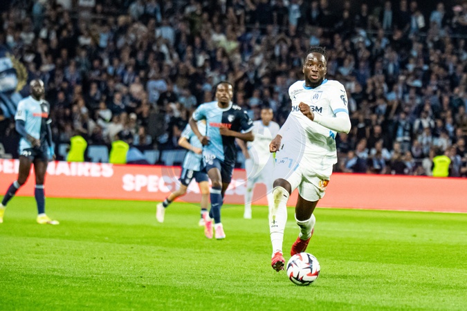 Jonathan Rowe (OM) - Match de Ligue 1 McDonalds, AC Le Havre contre l'Olympique de Marseille (1-3) au Havre le 10 mai 2025. Ligue 1 McDonalds match, AC Le Havre against Olympique de Marseille (1-3) in Le Havre on May 10, 2025.