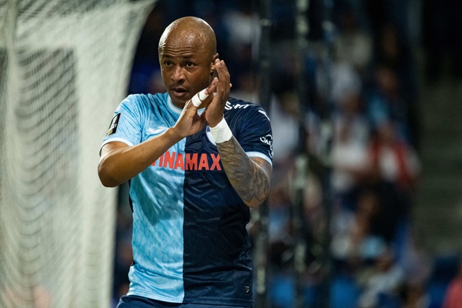 Andre Ayew (AC Le Havre) - Match de Ligue 1 McDonalds, AC Le Havre contre l'Olympique de Marseille (1-3) au Havre le 10 mai 2025. Ligue 1 McDonalds match, AC Le Havre against Olympique de Marseille (1-3) in Le Havre on May 10, 2025.