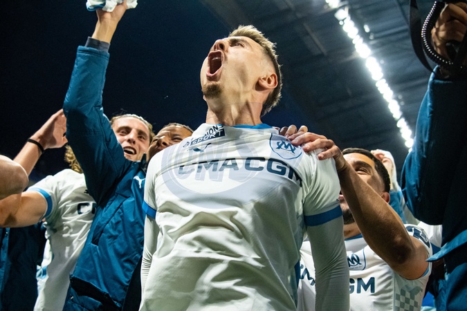 Valentin Rongier (OM) - Match de Ligue 1 McDonalds, AC Le Havre contre l'Olympique de Marseille (1-3) au Havre le 10 mai 2025. Ligue 1 McDonalds match, AC Le Havre against Olympique de Marseille (1-3) in Le Havre on May 10, 2025.