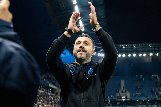 Roberto De Zerbi (OM) - Match de Ligue 1 McDonalds, AC Le Havre contre l'Olympique de Marseille (1-3) au Havre le 10 mai 2025. Ligue 1 McDonalds match, AC Le Havre against Olympique de Marseille (1-3) in Le Havre on May 10, 2025.