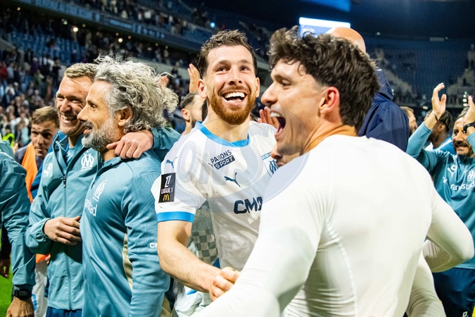 Pierre-Emile Hojbjerg (OM) - Match de Ligue 1 McDonalds, AC Le Havre contre l'Olympique de Marseille (1-3) au Havre le 10 mai 2025. Ligue 1 McDonalds match, AC Le Havre against Olympique de Marseille (1-3) in Le Havre on May 10, 2025.