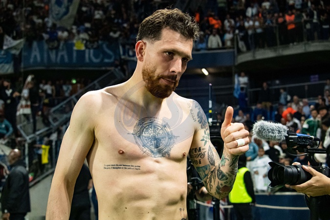 Pierre-Emile Hojbjerg (OM) - Match de Ligue 1 McDonalds, AC Le Havre contre l'Olympique de Marseille (1-3) au Havre le 10 mai 2025. Ligue 1 McDonalds match, AC Le Havre against Olympique de Marseille (1-3) in Le Havre on May 10, 2025.