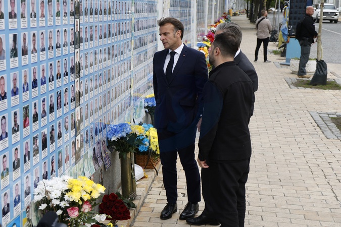 Emmanuel Macron, Keir Starmer, et Voloydmyr Zelensky visitent le Mur des Héros de la Nation et la cathédrale Sainte-Sophie à Kie