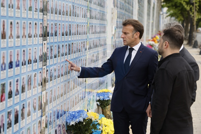 Emmanuel Macron, Keir Starmer, et Voloydmyr Zelensky visitent le Mur des Héros de la Nation et la cathédrale Sainte-Sophie à Kie