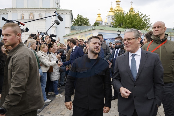 Emmanuel Macron, Keir Starmer, et Voloydmyr Zelensky visitent le Mur des Héros de la Nation et la cathédrale Sainte-Sophie à Kie