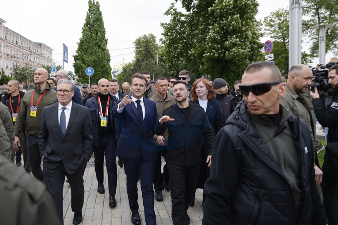 Emmanuel Macron, Keir Starmer, et Voloydmyr Zelensky visitent le Mur des Héros de la Nation et la cathédrale Sainte-Sophie à Kie