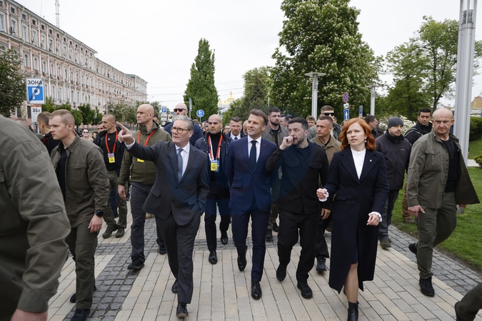 Emmanuel Macron, Keir Starmer, et Voloydmyr Zelensky visitent le Mur des Héros de la Nation et la cathédrale Sainte-Sophie à Kie