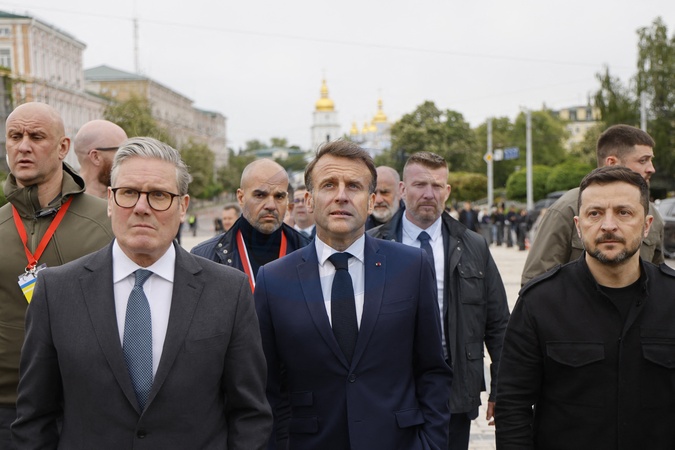 Emmanuel Macron, Keir Starmer, et Voloydmyr Zelensky visitent le Mur des Héros de la Nation et la cathédrale Sainte-Sophie à Kie