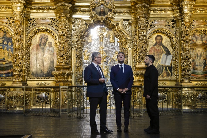 Emmanuel Macron, Keir Starmer, et Voloydmyr Zelensky visitent le Mur des Héros de la Nation et la cathédrale Sainte-Sophie à Kie