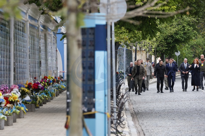 Emmanuel Macron, Keir Starmer, et Voloydmyr Zelensky visitent le Mur des Héros de la Nation et la cathédrale Sainte-Sophie à Kie