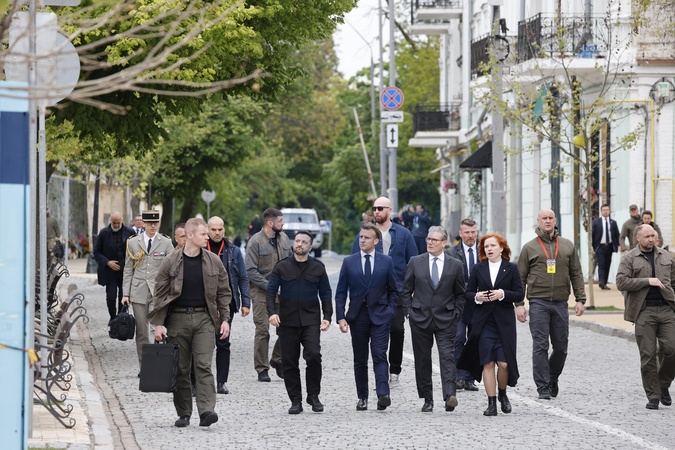 Emmanuel Macron, Keir Starmer, et Voloydmyr Zelensky visitent le Mur des Héros de la Nation et la cathédrale Sainte-Sophie à Kie