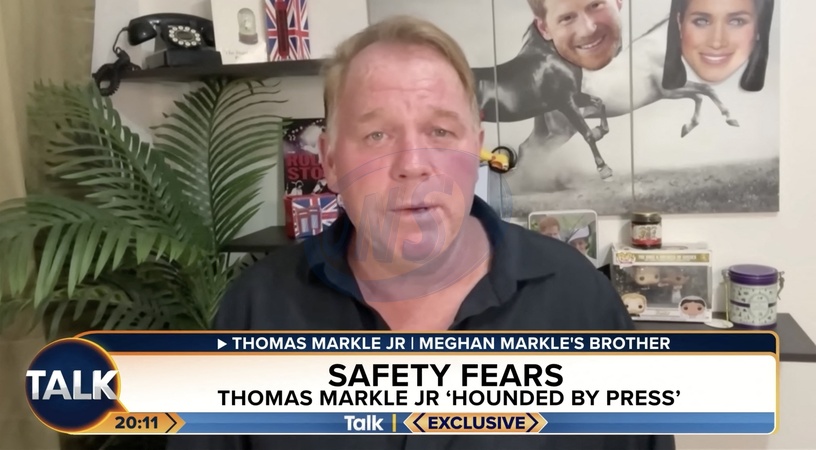 Picture MUST credit: TalkTV Meghan Markle's half brother says he believes the former actress will leave husband Prince Harry should they be stripped of their royal titles. Thomas Markle Junior, 58, is the son of 43-year-old Meghan's father Thomas Senior from his first marriage. Speaking on UK news channel TalkTV from his home in Oregon, in the USA, he said he believed the crunch could happen when 40-year-old Harry's estranged brother Prince William, 42, eventually becomes king. He said the couple one day splitting was "straightforward.” He was asked by interviewer Kevin O'Sullivan: "She cut your dad out of her life, she cut your sister out of her life ruthlessly, ,do you think that she may do the same to Harry when she feels she doesn't need him anymore or she's not he's no use to her anymore ?” He replied: "I think it's straightforward and I think it's pretty much going to happen "I think that's gonna happen because the threat of William taking the titles away. "So he should. If somebody attacked my wife like that while she was ill that's something you can never forgive. "Once the titles get stripped I think Harry's done.” Picture supplied by JLPPA