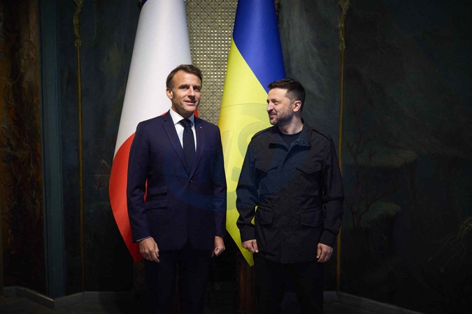 Déplacement d'Emmanuel Macron, Friedrich Merz, Keir Starmer, Donald Tusk et Voloydmyr Zelensky pour participer à la conférence de la Coalition des Volontaires à Kiev, le 10 mai 2025. A l'issue de celle-ci, Emmanuel Macron, Keir Starmer, et Voloydmyr Zelensky ont visité le Mur des Héros de la Nation et la cathédrale Sainte-Sophie. Lors de cette visite officielle, les quatre chefs d'État et de gouvernement ont plaidé en faveur d'un cessez-le-feu de 30 jours dans la guerre russo-ukrainienne. Emmanuel Macron, Friedrich Merz, Keir Starmer, Donald Tusk, and Voloydmyr Zelensky travel to attend the Coalition of the Willing conference in Kyiv on May 10, 2025. Following the conference, Emmanuel Macron, Keir Starmer, and Voloydmyr Zelensky visited the Wall of the Nation's Heroes and Saint Sophia Cathedral. During this official visit, the four heads of state and government called for a 30-day ceasefire in the Russo-Ukrainian war.