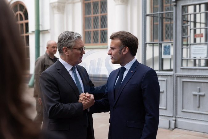 Déplacement d'Emmanuel Macron, Friedrich Merz, Keir Starmer, Donald Tusk et Voloydmyr Zelensky pour participer à la conférence de la Coalition des Volontaires à Kiev, le 10 mai 2025. A l'issue de celle-ci, Emmanuel Macron, Keir Starmer, et Voloydmyr Zelensky ont visité le Mur des Héros de la Nation et la cathédrale Sainte-Sophie. Lors de cette visite officielle, les quatre chefs d'État et de gouvernement ont plaidé en faveur d'un cessez-le-feu de 30 jours dans la guerre russo-ukrainienne. Emmanuel Macron, Friedrich Merz, Keir Starmer, Donald Tusk, and Voloydmyr Zelensky travel to attend the Coalition of the Willing conference in Kyiv on May 10, 2025. Following the conference, Emmanuel Macron, Keir Starmer, and Voloydmyr Zelensky visited the Wall of the Nation's Heroes and Saint Sophia Cathedral. During this official visit, the four heads of state and government called for a 30-day ceasefire in the Russo-Ukrainian war.