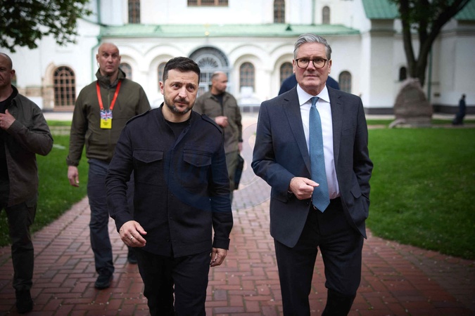 Déplacement d'Emmanuel Macron, Friedrich Merz, Keir Starmer, Donald Tusk et Voloydmyr Zelensky pour participer à la conférence de la Coalition des Volontaires à Kiev, le 10 mai 2025. A l'issue de celle-ci, Emmanuel Macron, Keir Starmer, et Voloydmyr Zelensky ont visité le Mur des Héros de la Nation et la cathédrale Sainte-Sophie. Lors de cette visite officielle, les quatre chefs d'État et de gouvernement ont plaidé en faveur d'un cessez-le-feu de 30 jours dans la guerre russo-ukrainienne. Emmanuel Macron, Friedrich Merz, Keir Starmer, Donald Tusk, and Voloydmyr Zelensky travel to attend the Coalition of the Willing conference in Kyiv on May 10, 2025. Following the conference, Emmanuel Macron, Keir Starmer, and Voloydmyr Zelensky visited the Wall of the Nation's Heroes and Saint Sophia Cathedral. During this official visit, the four heads of state and government called for a 30-day ceasefire in the Russo-Ukrainian war.