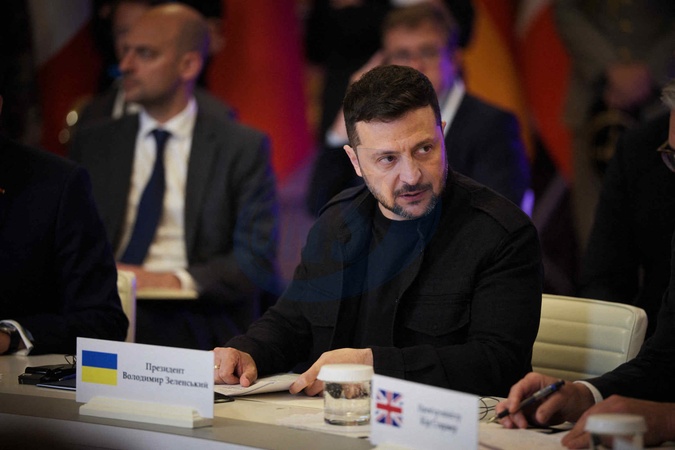 Déplacement d'Emmanuel Macron, Friedrich Merz, Keir Starmer, Donald Tusk et Voloydmyr Zelensky pour participer à la conférence de la Coalition des Volontaires à Kiev, le 10 mai 2025. A l'issue de celle-ci, Emmanuel Macron, Keir Starmer, et Voloydmyr Zelensky ont visité le Mur des Héros de la Nation et la cathédrale Sainte-Sophie. Lors de cette visite officielle, les quatre chefs d'État et de gouvernement ont plaidé en faveur d'un cessez-le-feu de 30 jours dans la guerre russo-ukrainienne. Emmanuel Macron, Friedrich Merz, Keir Starmer, Donald Tusk, and Voloydmyr Zelensky travel to attend the Coalition of the Willing conference in Kyiv on May 10, 2025. Following the conference, Emmanuel Macron, Keir Starmer, and Voloydmyr Zelensky visited the Wall of the Nation's Heroes and Saint Sophia Cathedral. During this official visit, the four heads of state and government called for a 30-day ceasefire in the Russo-Ukrainian war.