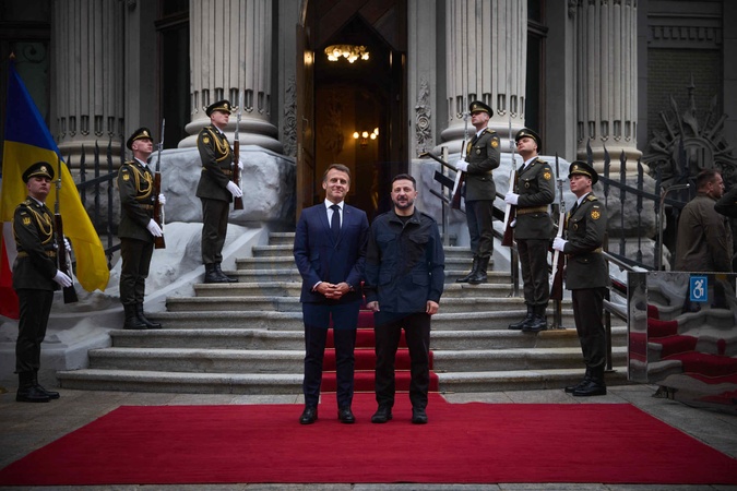 Déplacement d'Emmanuel Macron, Friedrich Merz, Keir Starmer, Donald Tusk et Voloydmyr Zelensky pour participer à la conférence de la Coalition des Volontaires à Kiev, le 10 mai 2025. A l'issue de celle-ci, Emmanuel Macron, Keir Starmer, et Voloydmyr Zelensky ont visité le Mur des Héros de la Nation et la cathédrale Sainte-Sophie. Lors de cette visite officielle, les quatre chefs d'État et de gouvernement ont plaidé en faveur d'un cessez-le-feu de 30 jours dans la guerre russo-ukrainienne. Emmanuel Macron, Friedrich Merz, Keir Starmer, Donald Tusk, and Voloydmyr Zelensky travel to attend the Coalition of the Willing conference in Kyiv on May 10, 2025. Following the conference, Emmanuel Macron, Keir Starmer, and Voloydmyr Zelensky visited the Wall of the Nation's Heroes and Saint Sophia Cathedral. During this official visit, the four heads of state and government called for a 30-day ceasefire in the Russo-Ukrainian war.