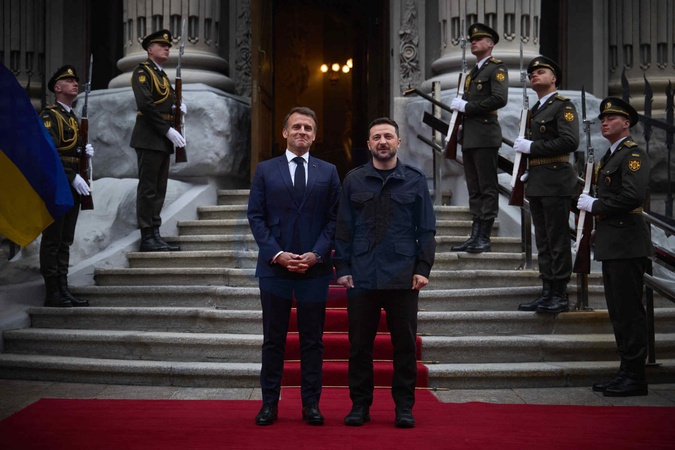Déplacement d'Emmanuel Macron, Friedrich Merz, Keir Starmer, Donald Tusk et Voloydmyr Zelensky pour participer à la conférence de la Coalition des Volontaires à Kiev, le 10 mai 2025. A l'issue de celle-ci, Emmanuel Macron, Keir Starmer, et Voloydmyr Zelensky ont visité le Mur des Héros de la Nation et la cathédrale Sainte-Sophie. Lors de cette visite officielle, les quatre chefs d'État et de gouvernement ont plaidé en faveur d'un cessez-le-feu de 30 jours dans la guerre russo-ukrainienne. Emmanuel Macron, Friedrich Merz, Keir Starmer, Donald Tusk, and Voloydmyr Zelensky travel to attend the Coalition of the Willing conference in Kyiv on May 10, 2025. Following the conference, Emmanuel Macron, Keir Starmer, and Voloydmyr Zelensky visited the Wall of the Nation's Heroes and Saint Sophia Cathedral. During this official visit, the four heads of state and government called for a 30-day ceasefire in the Russo-Ukrainian war.