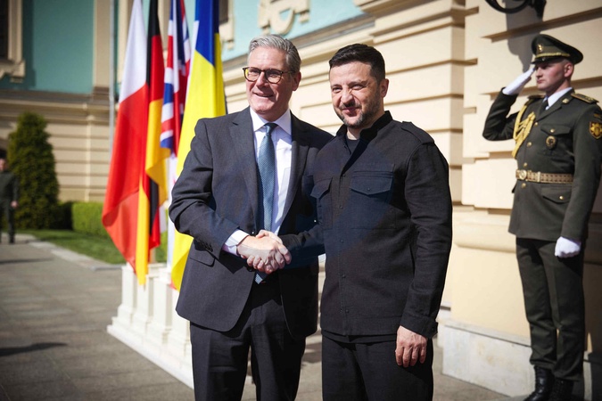 Déplacement d'Emmanuel Macron, Friedrich Merz, Keir Starmer, Donald Tusk et Voloydmyr Zelensky pour participer à la conférence de la Coalition des Volontaires à Kiev, le 10 mai 2025. A l'issue de celle-ci, Emmanuel Macron, Keir Starmer, et Voloydmyr Zelensky ont visité le Mur des Héros de la Nation et la cathédrale Sainte-Sophie. Lors de cette visite officielle, les quatre chefs d'État et de gouvernement ont plaidé en faveur d'un cessez-le-feu de 30 jours dans la guerre russo-ukrainienne. Emmanuel Macron, Friedrich Merz, Keir Starmer, Donald Tusk, and Voloydmyr Zelensky travel to attend the Coalition of the Willing conference in Kyiv on May 10, 2025. Following the conference, Emmanuel Macron, Keir Starmer, and Voloydmyr Zelensky visited the Wall of the Nation's Heroes and Saint Sophia Cathedral. During this official visit, the four heads of state and government called for a 30-day ceasefire in the Russo-Ukrainian war.