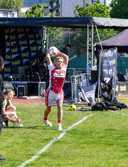Bianca Gascoigne showing off her footballing skills at Celebrity Soccer Six at Mile End Stadium . Londond 10 May 2025, Credit:Jules Annan / Avalon
