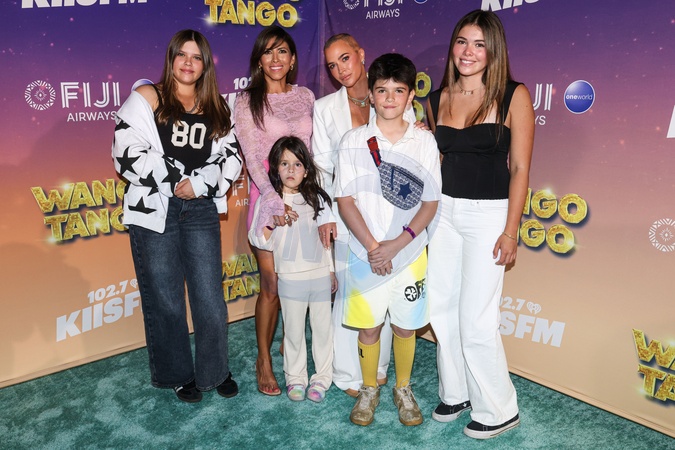 HUNTINGTON BEACH, ORANGE COUNTY, CALIFORNIA, USA - MAY 10: Slate Arroyave, Christina Mecklenburg, Dove Arroyave, Teddi Mellencamp Arroyave, Cruz Arroyave and Isabella Arroyave arrive at iHeartRadio's 102.7 KIIS FM Wango Tango 2025 Presented by Fiji Airways held at the Huntington City Beach on May 10, 2025 in Huntington Beach, Orange County, California, United States., Credit:Xavier Collin / Avalon