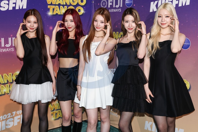 HUNTINGTON BEACH, ORANGE COUNTY, CALIFORNIA, USA - MAY 10: Chenyu (Zhu Chenyu), Miche (Chen Jiayi), Shijie (Li Shijie), Kat (Chen Jiachen), Quchang (Qu Chang) of Chinese girl group A2O MAY arrive at iHeartRadio's 102.7 KIIS FM Wango Tango 2025 Presented by Fiji Airways held at the Huntington City Beach on May 10, 2025 in Huntington Beach, Orange County, California, United States., Credit:Xavier Collin / Avalon