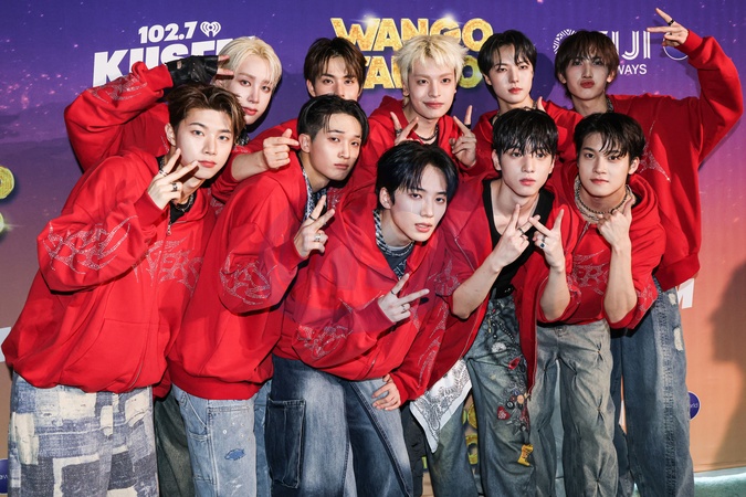 HUNTINGTON BEACH, ORANGE COUNTY, CALIFORNIA, USA - MAY 10: Hyunwoo, Hunter, Sumin, Minjae, Jinsik, Yujun, Yechan, Junmin, Junghoon and Seeun of South Korean boy band xikers arrive at iHeartRadio's 102.7 KIIS FM Wango Tango 2025 Presented by Fiji Airways held at the Huntington City Beach on May 10, 2025 in Huntington Beach, Orange County, California, United States., Credit:Xavier Collin / Avalon
