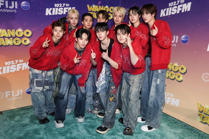 HUNTINGTON BEACH, ORANGE COUNTY, CALIFORNIA, USA - MAY 10: Hyunwoo, Hunter, Sumin, Minjae, Jinsik, Yujun, Yechan, Junmin, Junghoon and Seeun of South Korean boy band xikers arrive at iHeartRadio's 102.7 KIIS FM Wango Tango 2025 Presented by Fiji Airways held at the Huntington City Beach on May 10, 2025 in Huntington Beach, Orange County, California, United States., Credit:Xavier Collin / Avalon
