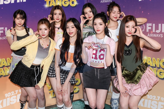 HUNTINGTON BEACH, ORANGE COUNTY, CALIFORNIA, USA - MAY 10: Ye-on, Juun, A-na, Ian, Jiwoo, Yuha, Carmen (Nyoman Ayu Carmenita) and Stella of South Korean girl group Hearts2Hearts arrive at iHeartRadio's 102.7 KIIS FM Wango Tango 2025 Presented by Fiji Airways held at the Huntington City Beach on May 10, 2025 in Huntington Beach, Orange County, California, United States., Credit:Xavier Collin / Avalon