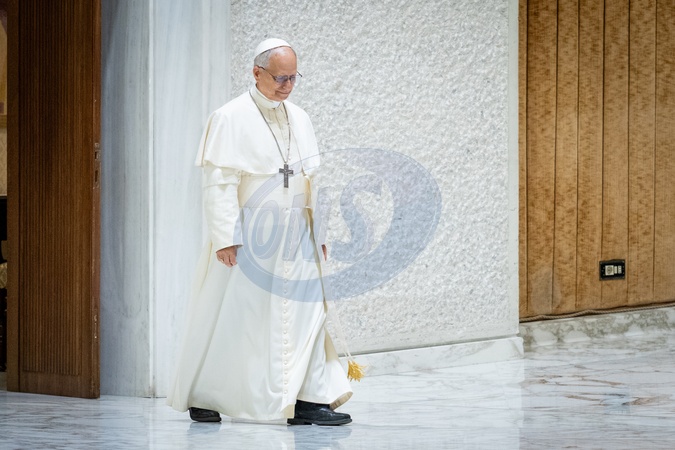 Pope Leo XIV meets members of the international media in the Paul VI Hall in Vatican City, Vatican, on 12 May 2025.
