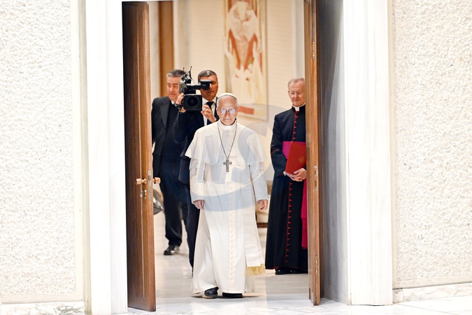 Pope Leone XIV meets the Media at Paolo VI Hall in the Vatican CIty, Rome.12 May 2025