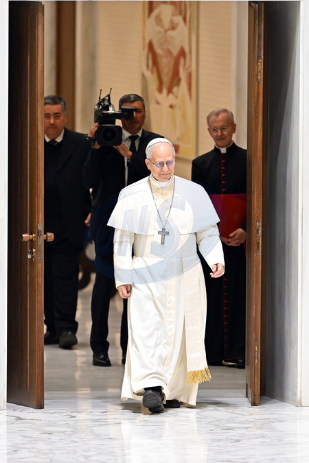 Pope Leone XIV meets the Media at Paolo VI Hall in the Vatican CIty, Rome.12 May 2025
