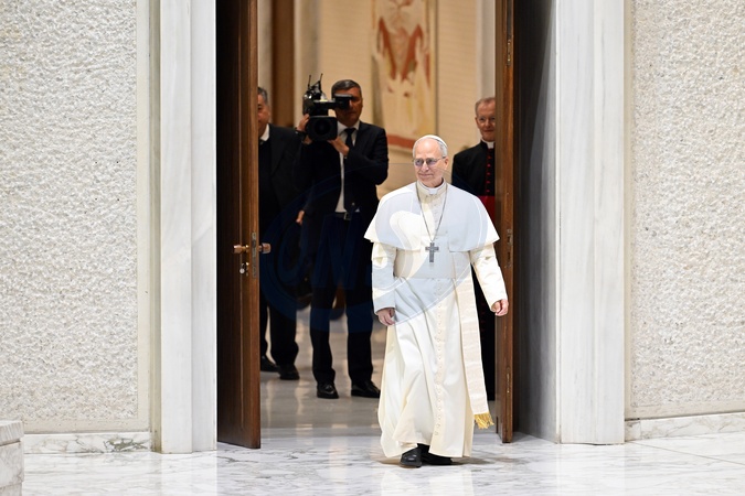 Pope Leone XIV meets the Media at Paolo VI Hall in the Vatican CIty, Rome.12 May 2025