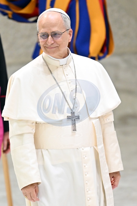 Pope Leone XIV meets the Media at Paolo VI Hall in the Vatican CIty, Rome.12 May 2025