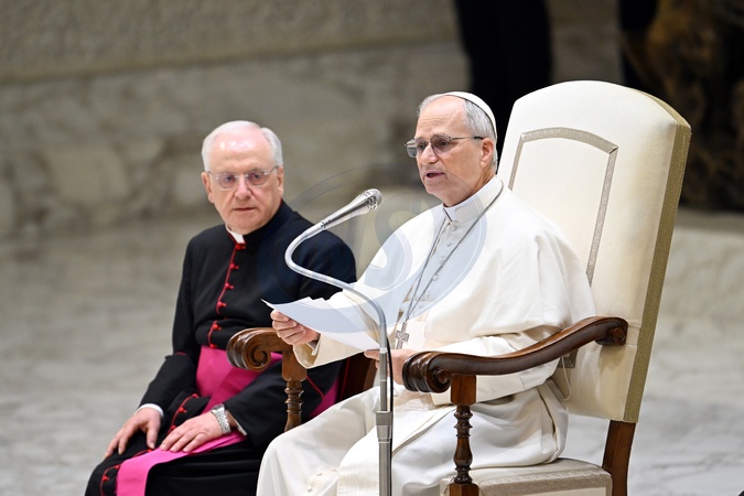 Pope Leone XIV meets the Media at Paolo VI Hall in the Vatican CIty, Rome.12 May 2025