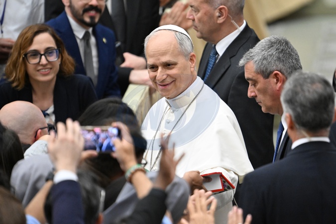 Pope Leone XIV meets the Media at Paolo VI Hall in the Vatican CIty, Rome.12 May 2025