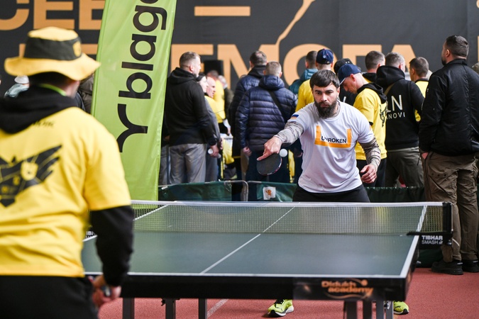 Athletes play table tennis during the UNBROKEN GAMES for the Ukrainian military and veterans, Lviv, Ukraine, on May 10, 2025. (Photo by Anastasiia Smolienko/Ukrinform), Credit:Anastasiia Smolienko / Avalon