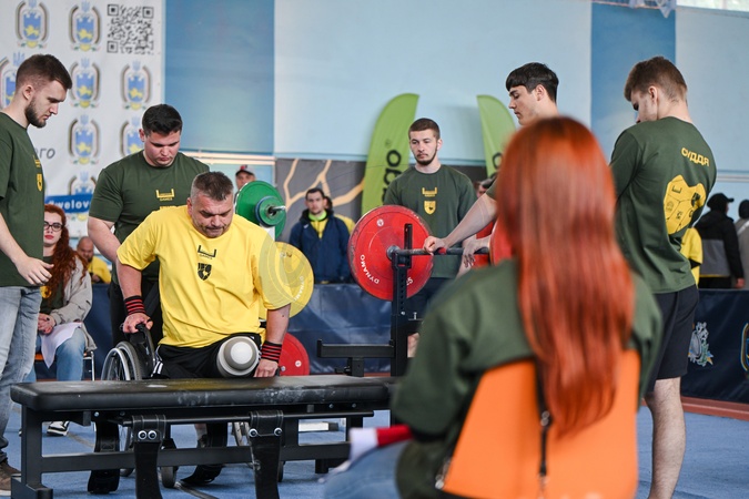 An athlete with amputated legs gets on the bench during the UNBROKEN GAMES for the Ukrainian military and veterans, Lviv, Ukraine, on May 10, 2025. (Photo by Anastasiia Smolienko/Ukrinform), Credit:Anastasiia Smolienko / Avalon