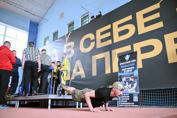 A man does press-ups during the UNBROKEN GAMES for the Ukrainian military and veterans, Lviv, Ukraine, on May 10, 2025. (Photo by Anastasiia Smolienko/Ukrinform), Credit:Anastasiia Smolienko / Avalon