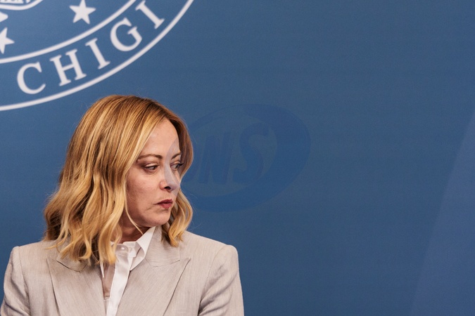 Giorgia Meloni and Kyriakos Mitsotakis during a statements to the press at the end of the Italy-Greece Intergovernmental Summit, Rome, Italy 12 May 2025, Credit:Francesco Fotia / Avalon